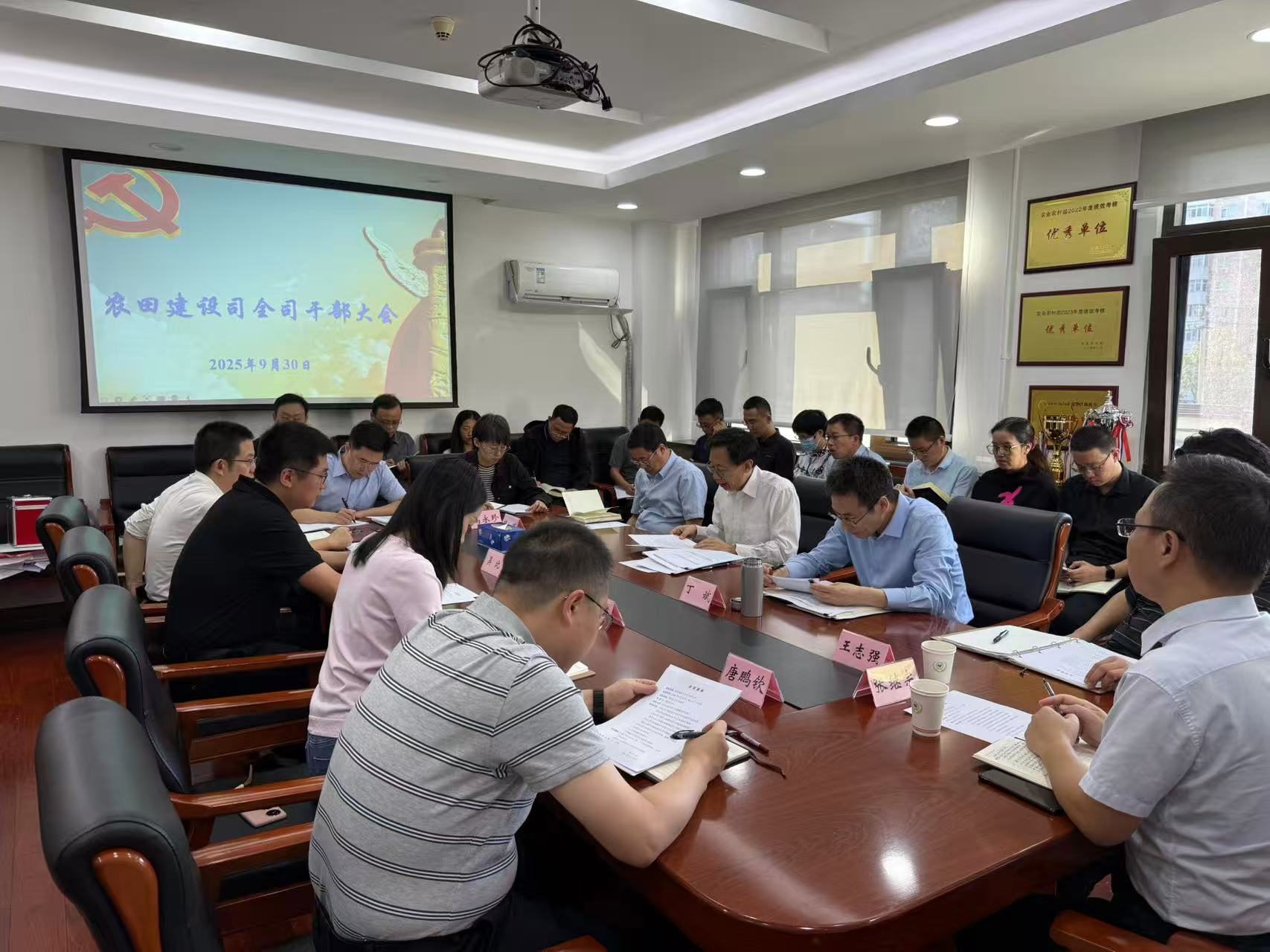 9月30日,农田建设司召开全司干部大会,集中传达学习部党组会议有关精神以及部安委办《关于切实做好中秋国庆假期和第四季度安全生产工作的通知》、部学习教育办关于中秋国庆期间深入贯彻中央八项规定精神的工作提示和部直属机关党委《关于中秋国庆期间强化正风肃纪确保廉洁过节的通知》精神,通报违反中央八项规定精神典型案例,对切实做好节前安全生产、值班值守、作风建设等工作进行再动员再部署再强调。
